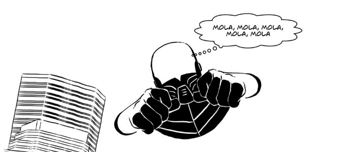A ello súmese un dibujo sencillo y sobrio, obra de George Kambadais en la primera entrega y de Fabian Cobos en la segunda, deudores ambos del cartoon en ocasiones, que agiliza la narración, sin excesivos detalles pero potenciando gráficamente lo que se ha de contar. A pesar del cambio de dibujante en la segunda grapa, no se percibe una ruptura estética y eso consigue que la obra gane en homogeneidad. Quizá el sobrio blanco y negro pueda restarle atractivo a la propuesta, pero hay páginas, como la octava del primer número, que justifican la compra del ejemplar por la resolución grafica narrativa mostrada.