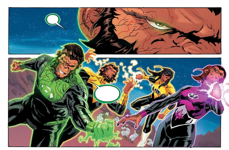 Si hay una cabecera en la DC actual en la que se echa de menos su glorioso pasado reciente es la de Green Lantern. La gloriosa etapa de Geoff Johns que trajo de vuelya a Hal Jordan y a los corps a la primera línea del universo DC ya es considerada clásico. De hecho, los Lanterns, junto con la continuidad de Batman, son los únicos personajes que no vieron alterado ni su estatus ni su contexto e historia con el criticado “New 52”. Una sombra muy alargada la de Geoff Johns que empequeñece la labor de a quien le tocó recoger el testigo: Robert Venditti, que en este caso no está al nivel que demostró en su etapa en X-O Manowar, y por el momento se ha limitado a narrar aventuras que entretienen aunque no consiguen dejar el poso de trascendencia como antaño. Y es que sustituir al guionista más célebre de una serie es una labor titánica. Por suerte estos últimos años “post – Johns” ha habido propuestas interesantes en relación a los centinelas esmeralda en el terreno de los crossover. Muestra de ello son los cruces que ya han vivido los corps con el universo de Star Trek en las dos series limitadas coeditadas junto a IDW Publishing, (“Guerra Espectral” – “Spectrum War” – y “Strange Words”), o con el universo de “El Planeta de los Simios”, coeditada junto a Boom! Studios.