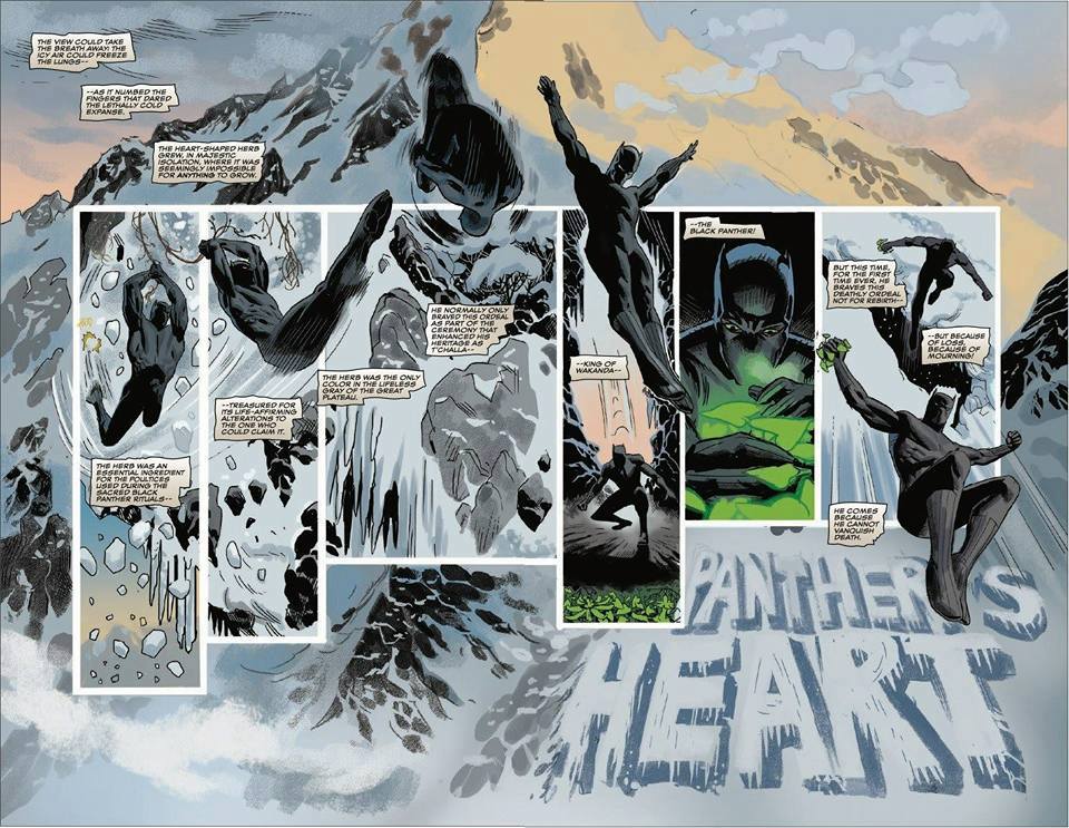 En “Panther´s Heart” McGreggor nos propone una historia que funciona perfectamente como broche a su etapa de Jungle Action. Con su estilo poético característico de esa época, el guionista permite a T´Challa cerrar una etapa de su vida de una forma muy emotiva que no dejará indiferente a los fans. De entre todos los personajes del elenco tradicional de McGreggor, el guionista centrará la atención en aquella que definió hace cuarenta años como “una cantante que más tarde fue trabajadora social… hasta que las palabras de ese hombre tranquilo y elocuente la convencieron de que podría aprender más en Wakanda”: Monnica Lynne, la primera pareja norteamericana de T´Challa.