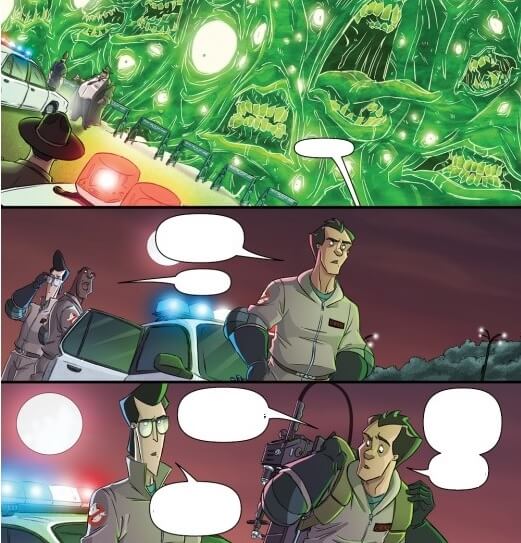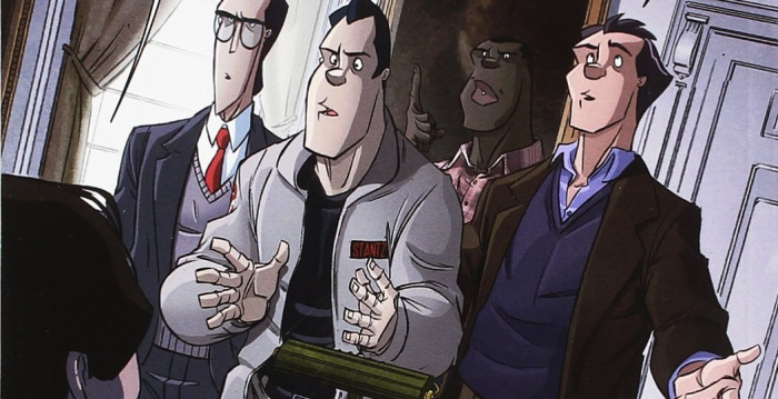 En este segundo volumen, que recoge los números 5 al 8 del volumen uno de la serie de Ghostbusters de IDW, nos encontramos al mismo equipo creativo: Erik Burnham al guion, Dan Schoening a los dibujos – con la participación de los lápices de Tristan Jones en la historia de complemento del número 8 – y el color de Luis Antonio Delgado. Cierto que una de las premisas de esta serie es la fidelidad en cuanto a caracterización de las películas de Peter Venkman, Egon Spengler, Raymond Stanz y Winston Zeddemore, pero eso no supone un corsé para el guionista. Burnham nos plantea dos aventuras con los suficientes puntos de interés para atrapar al lector.