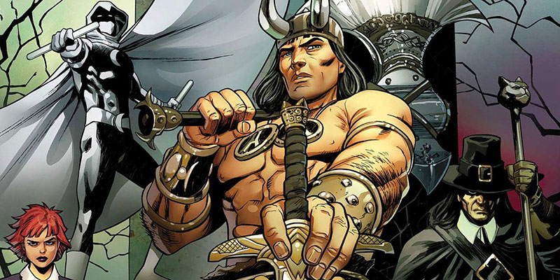 Zub, conoce perfectamente en qué tipo de historias se mueve el cimmerio y la relación entre los personajes de R.E Howard, ligada a su vez con un clásico personaje Marvel como es el Caballero Luna, hace que en toda la trama ninguno de los protagonistas quede fuera de lugar. El guionista presenta aquí a un enemigo lo suficientemente poderoso como para atraer a todos juntos: el dios serpiente Set. Este, a través de un ritual a lo largo del tiempo, une al equipo con un propósito nefasto, lo que genera unas alianzas que rara vez se podrían imaginar fuera de la ficción que tanto gusta a los fanáticos de la espada y brujería.