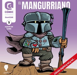 Pero aquí hemos venido a hablar de cómics, no de películas ni de series televisivas. Así que vamos a ello. Ha sido tal el éxito de The Mandalorian que no han tardado en salir productos derivados y paródicos sobre la serie. Este es el caso del cómic que hoy traemos a la web y que acaba de salir a la venta esta misma semana. Nos referimos a “El Mangurriano”, un tebeo creado por Daniel Zarzuelo, más conocido como DaniZAR, de la mano de la Editorial Aftercomic en formato digital.