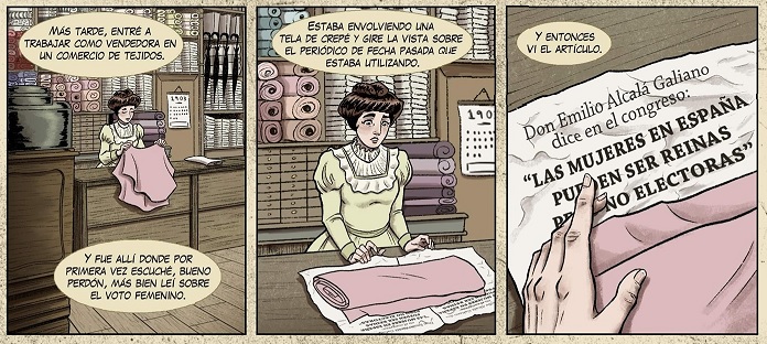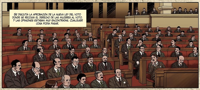 Citando a la protagonista del cómic que tratamos hoy, “La libertad se aprende ejerciéndola”. Así lo hizo la principal valedora del sufragio femenino: Clara Campoamor (Madrid, 12 de febrero de 1888 - Lausana, 30 de abril de 1972): Abogada, escritora y política en los tiempos de la II República Española. Fundadora de la Unión Republicana Femenina, el ideario de Campoamor se regía sobre los valores democráticos, republicanos, laicos y liberales.