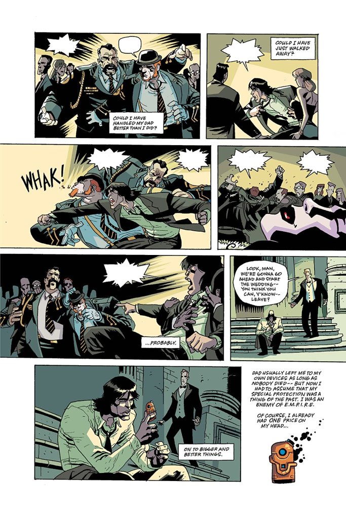 Casanova comenzó su andadura en Image Comics en 2006, una época en la que el comic independiente no había despuntado como lo hizo posteriormente. Sus autores eran apenas reconocidos al principio. Matt Fraction comienza su carrera y empezaba a trabajar también para Marvel Comics. Con unas ideas más o menos claras de lo que quería realizar, este guionista se inspira en las historias clásicas de la Patrulla X de Chris Claremont y John Byrne. Por otra parte, se apoya en Warren Ellis para desarrollar un buen montón de conceptos en un hipotético formato de comic, con páginas reducidas y muchos extras. También utilizo los consejos de su amigo Phil Spector, el mítico productor musical creador del «muro de sonido«, que le ayudo con música densa y compacta mientras escribía sus páginas. Como afirma el mismo guionista, lo que quiso hacer es un comic, invadido por el pánico, exuberante, y completamente alocado que empujara en diez direcciones diferentes al mismo tiempo. Fraction utiliza multitud de referencias de obras muy dispares como; “American Flagg” de Howard Chaykin, el evidente uso de Nick Furia de Jim Steranko o las novelas de Michael Moorcock. En los primeros números se puso a los lápices de la obra Gabriel Bá (“Umbrella Academy”,”Daytripper”,”B.R.P.D”) , que cambió su forma de trabajar por el tipo de obra. La estructura en siete arcos argumentales (uno por cada pecado capital) se desarrollaron en siete entregas de dieciséis páginas. Por lo que estilo de este dibujante marco el estilo general de todo lo editado. Su trabajo junto con Cris Peter manifestó un ritmo y una temática reseñable. En este primer tomo tenemos a la lujuria, que en este caso utiliza un coloreado en bitono verde, que puede resultar inexplicable. En las siguientes entregas el trabajo recayó en Fábio Moon (“B.R.P.D”,”Daytrippier”,”Hellboy”) ya que su hermano gemelo estuvo ocupado con una obra referente como Umbrella Academy con Gerald Way. Para seguir con el tema artístico, hay que explicar que esta obra tiene su propia paleta de colores. La paleta de Casanova se trata de un conjunto de 45 colores que se utilizó para todas las viñetas. Y las utilizaban para resaltar el ambiente de cada escena, para obtener un efecto más dramático ayudando al desarrollo de la historia. Y conseguir centrar la atención en el punto correcto, para dejar claro que viñeta es la más importante en cada página. Según Cris Peter, cuando se colorea digitalmente se tiene a disposición una infinidad inimaginable de colores, por lo que elegir los correctos puede suponer un reto mayúsculo para los artistas.