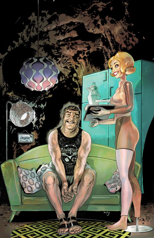 A los guiones tenemos al autor Mark Russell(“The Flintstones”, “The Snagglepuss Chronicles”, “Second Coming”) con un estilo muy peculiar para redactar sus textos. Russell casi siempre tiende a ser más humorístico en casi todo en lo que trabaja, pero en esta obra en concreto tenemos una mezcla muy extraña. Quiere tener cierta gracia con algunas situaciones, pero no terminar de encajar ese humor con el tono general de la obra. La historia expone situaciones que pueden llegar a ser graciosas, pero que al final de cada viñeta la sonrisa desaparece de la cara. Este tipo de guiones tienes sus cosas positivas y negativas. Todo dependerá del sentido del humor que tenga el lector, ya que en ocasiones las estrategias narrativas pasan de ser tronchantes a dramáticas.