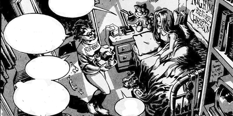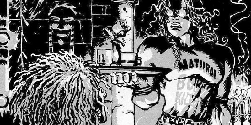 Con motivo de su 25 aniversario y de la inminente reedición llevada a cabo por su autor, vamos a reseñar desde otro punto de vista el cásico de de Sergio Bleda «El Baile del Vampiro«. Vamos a ir desgranando en este texto, poco a poco, la trama de este magnifico tebeo. La acción transcurre a mediados de los años 90, una década muy peculiar y llamativa en algunos aspectos. Los grandes mitos habían caído o simplemente desaparecido, una juventud difícil de entretener, o de tener ciertas metas en la vida, deambula por las calles sin esperar gran cosa. Que mejor marco para esta obra que la unos personajes que no acaban de encontrar su sitio en el mundo. Por un lado tenemos a Jacob, un personaje de lo más interesante y peculiar. Vive entre la gente pero sin querer saber nada de ellos, no se encuentra a gusto en esta época tan carente de valores donde nadie se preocupa por nadie. Su contrapartida es Inés, una joven vampira que disfruta de todo lo que la rodea como alguien de su edad, hasta los límites, claro, que su condición le impone. Por otro lado tenemos al gran «Vampiro Blanco«, también conocido como Paul, un ser de más de 500 años que parece que maneja a su antojo todo lo que ocurre a su alrededor. La historia comienza cuando Jacob salva a una chica de una brutal paliza por parte de unos skin-heads, la lleva hasta su escondrijo donde le revela su verdadera naturaleza, paralelamente Inés encuentra a Ana, una joven que ya ha sido mordida por otro vampiro pero de la que no sabemos mucho mas. Ana acabará por desarrollar ciertas habilidades que hace mucho tiempo que no se ven en la raza vampirica. Pronto Inés empezará a ver en la chica que encontró, a esa amiga que no tiene, una compañera distinta a Jacob, al que está muy unida pero al que no le puede contar ciertas cosas. la mas importante: que está enamorada de él. Todo se complica de sobre manera por que Jacob parece sentir algo por la chica que salvó de los nazis, pero es una humana al fin al cabo. Si algo le han enseñado 250 años de andanzas es que hay cosas que son imposibles. Inés y Jacob saben lo que pueden implicar sus movimientos, y que consecuencias pueden traer. Pero a Barcelona llega un extraño cazador de vampiros con la firme intención de acabar con todos ellos, aunque eso nos depare muchas sorpresas.