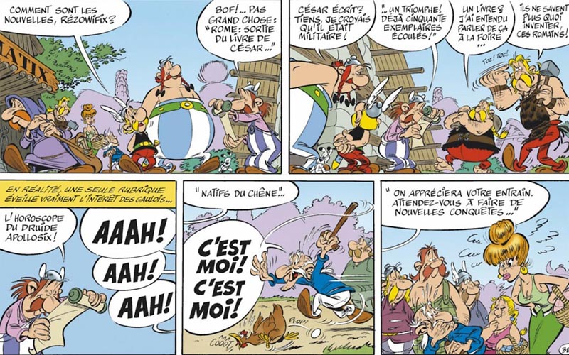 Este tebeo nos presenta a los inolvidables personajes de Asterix y Obelix en una nueva y emocionante aventura. La historia se desarrolla entre la antigua Roma y el único territorio que se le resiste por conquitar. Julio César está a punto de publicar sus victorias en las Galias, en un gran manuscrito. Sin embargo, una intriga política se teje alrededor del emperador, y el valioso papiro de César, que contiene información confidencial, se convierte en el objeto de deseo. Asterix, Obelix y sus amigos se ven envueltos en esta trama y se embarcan en una misión para proteger el papiro y garantizar la libertad de los buhoneros (la prensa del momento) de Lutecia.