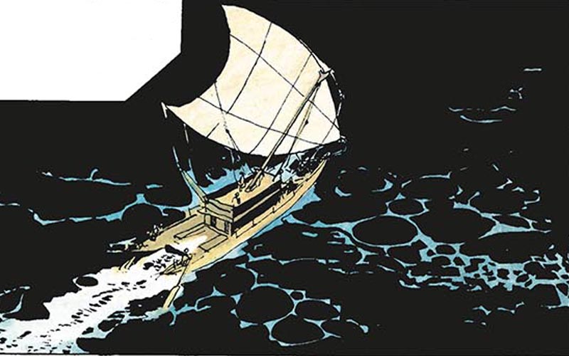 El estilo artístico de Hugo Pratt en “La Balada del Mar Salado” es verdaderamente inconfundible. Su técnica de dibujo en blanco y negro crea una estética única y evocadora, que se adapta perfectamente a la atmósfera misteriosa y aventurera de la historia. A través de líneas precisas y detalles minuciosos, Pratt logra capturar la esencia de los personajes, los escenarios y las emociones que impregnan la trama. El autor emplea una variedad de técnicas en su dibujo para transmitir una amplia gama de emociones y establecer la ambientación. Los trazos fluidos y sueltos a veces dan una sensación de movimiento y dinamismo, mientras que en otros momentos utiliza líneas más firmes y detalladas para resaltar los elementos clave de la composición. Este dominio técnico permite a Pratt crear imágenes impactantes y llenas de vida en cada viñeta.