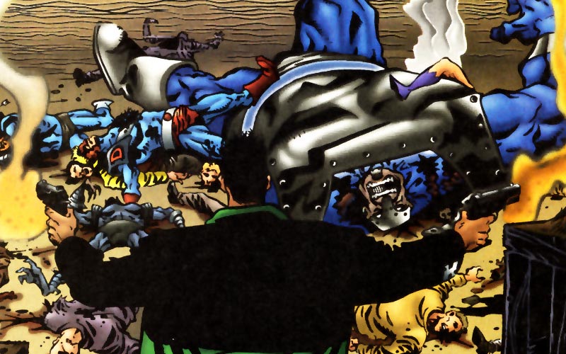 Desde el primer número, Ennis establece el tono oscuro y violento de la serie, pero también incorpora un humor negro y un ingenio punzante que se convierten en una parte integral de la narrativa. Las viñetas están llenas de diálogos ingeniosos y momentos hilarantes, incluso en las situaciones más peligrosas. Esto crea un equilibrio interesante entre la acción trepidante y la comedia, que se convierte en una de las señas de identidad de Hitman. Ennis y McCrea nos presentan un elenco de personajes secundarios muy locos (en el buen sentido de la palabra) que enriquecen la trama y le dan un ambiente particularmente peculiar. Desde su compañero y mejor amigo Natt «the Hat» Walls el socio de Tommy. Al crecer en Detroit, se unió a los marines para alejarse de las pandillas. Allí conoció y se hizo amigo de Tommy. Fueron juntos a la Guerra del Golfo y, sin darse cuenta, mataron a algunos soldados británicos del SAS una noche en un incidente de «fuego amigo» que nunca informaron. Después de la guerra, trató de volver a su pandilla, pero un policía le salvó la vida y la pandilla sospechó de traición. Natt huyó y se instaló en Gotham con Tommy. Natt le prometió a su madre moribunda que ya no maldeciría, ya que «el aire solía volverse azul a su alrededor». Comienza a maldecir nuevamente en el número 23, debido a la situación actual. Igual que tenemos el entrañable equipo de superhéroes extravagantes conocidos como Sección 8, cada personaje tiene sus propias motivaciones y personalidades distintivas. Esto brinda una variedad de dinámicas interesantes y divertidas a medida que la historia avanza. Uno de los aspectos más destacados de Hitman es la forma en que Ennis y McCrea exploran los temas más profundos de la vida y la moralidad a través de sus personajes. Tommy Monaghan es un hombre atrapado en un mundo de violencia y muerte, y su lucha por encontrar un sentido y un propósito en su vida es un tema recurrente a lo largo de la serie. A medida que se enfrenta a situaciones cada vez más peligrosas y moralmente complicadas, el lector se sumerge en las reflexiones existenciales del personaje y se cuestiona los límites de la moralidad en un mundo lleno de ambigüedad. Además de explorar temas más serios, Ennis y McCrea también aprovechan la oportunidad para homenajear y parodiar el género de superhéroes en su conjunto. A lo largo de la serie, hay numerosos cameos y referencias a otros personajes famosos de DC Comics, lo que conecta a Hitman con el universo más amplio de superhéroes. Estos momentos son un deleite para los lectores que están familiarizados con el mundo de los cómics y añaden capas adicionales de profundidad y diversión a la historia.
