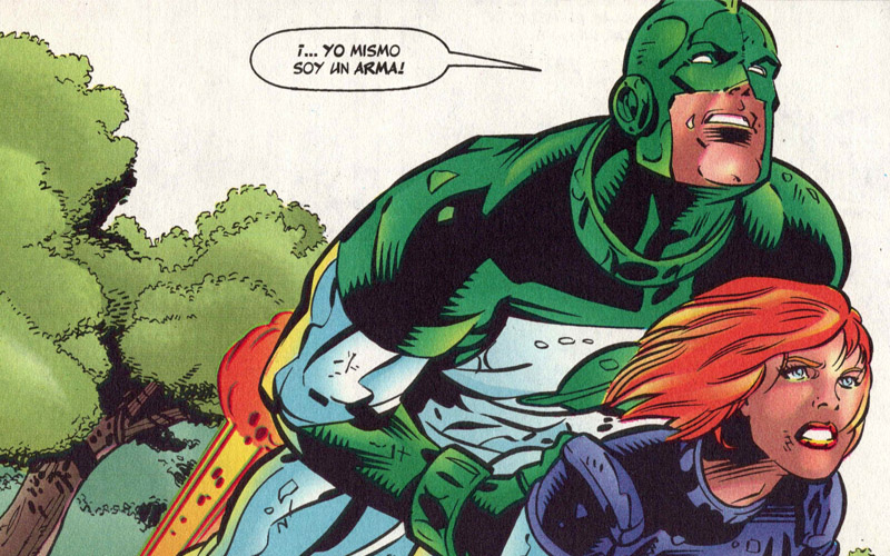 El arte es fundamental para sumergirnos en la historia y conectar con los personajes. En el caso de este tebeo, el trabajo conjunto de los artistas Scott Kolins y John Lowe juega un papel importante. Desde la primera página de “The Untold Legend of Captain Marvel”, el arte de Scott Kolins y John Lowe captura la atención del lector. Su estilo distintivo y lleno de energía se adapta perfectamente al tono épico y cósmico de la historia. Cada viñeta está cuidadosamente elaborada, con un equilibrio entre detalles realistas y elementos de diseño estilizados. Una de las fortalezas del arte de Kolins y Lowe es su habilidad para representar el movimiento y la acción de manera dinámica. Las secuencias de lucha y las batallas cósmicas cobran vida en sus manos, con poses impactantes y líneas de acción que guían el flujo visual de la página. Los lectores se sumergen en las emocionantes peleas del Capitán Marvel, sintiendo la intensidad de cada golpe y movimiento. El diseño de personajes es otro aspecto destacado del arte de Kolins y Lowe del Capitán Marvel. Cada personaje tiene una apariencia distintiva y reconocible, con rasgos únicos que reflejan su personalidad y papel en la trama. El Capitán Marvel mismo es representado de manera imponente, con una postura segura y un porte heroico que transmite su fuerza y determinación. La colaboración entre Scott Kolins y John Lowe en el arte de The Untold Legend of Captain Marvel es fluida y se complementa a la perfección. Kolins establece los trazos y las composiciones iniciales, mientras que Lowe agrega profundidad y vida con su habilidad para el entintado. La combinación de sus talentos crea un resultado final cohesivo y visualmente llamativo.