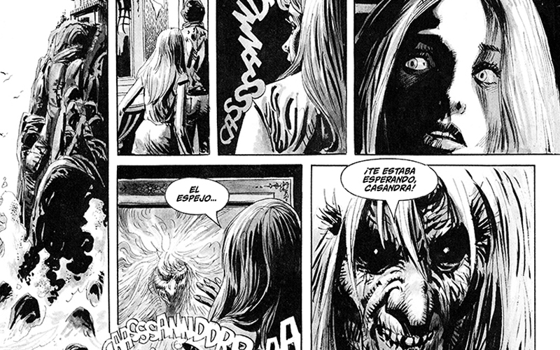 La composición de página es otro aspecto en el que el talento de Ortiz brilla. Su habilidad para distribuir el espacio y guiar la mirada del lector a través de la secuencia de viñetas es sobresaliente. Cada página está cuidadosamente estructurada para maximizar el impacto visual y narrativo. Los paneles se suceden con fluidez, permitiendo que la historia se desarrolle de manera coherente y emocionante. Una de las características distintivas del estilo de José Ortiz es su capacidad para capturar la emoción en los rostros de los personajes. Desde el miedo hasta la desesperación, pasando por la sorpresa y la angustia, cada emoción está bellamente plasmada en el rostro de los protagonistas. Estas expresiones intensifican la conexión emocional entre el lector y la historia, lo que nos sumerge aún más en el mundo sobrenatural que muestra el tebeo.
