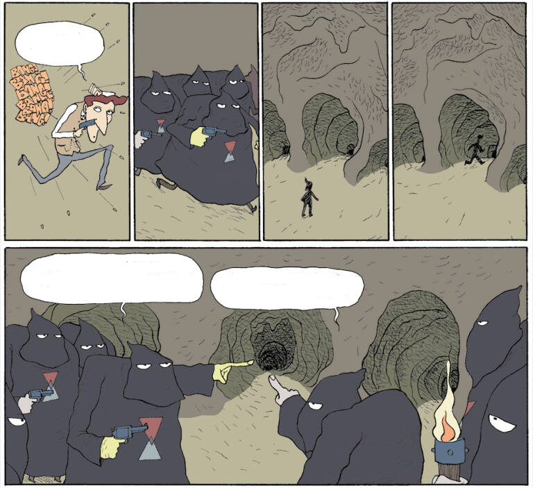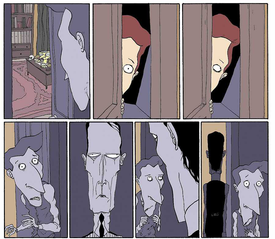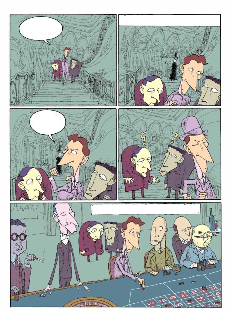David Lorenzo debutó con esta obra. Llama positivamente la atención del estilo que usa para este tebeo. Una estética distintiva y a menudo que recuerda a otros artistas de la nouvelle BD como Joann Sfar, Lewis Trodheim o Christophe Blain. Sus ilustraciones a menudo se caracterizan por ser detalladas y llenas de elementos grotescos. Tiene un don para representar el mundo de manera retorcida y algo exagerada, lo que le permite crear un ambiente inquietante y surrealista en esta propuesta que hoy nos ocupa. Sus rostros a menudo muestran expresiones exageradas y a veces bufonas que reflejan las personalidades y emociones de los personajes. Este enfoque en la caracterización agrega una capa adicional de profundidad y singularidad a sus historias y hace que sus personajes cobren vida en las páginas del cómic. Todo el tebeo está hecho a plumilla sobre papel, menos el coloreado que, al ser tintas planas. es digital. Este coloreado digital con tintas planas implica la selección precisa de colores sólidos. Esto brinda la capacidad de lograr tonos planos y vívidos con una claridad excepcional.