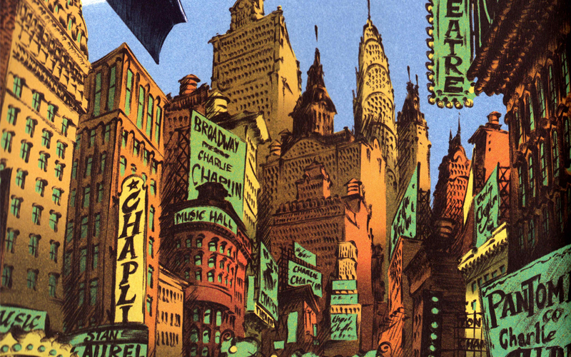 Una vez en Estados Unidos, Chaplin se encuentra con un mundo completamente nuevo, donde las luces de Broadway y el floreciente cine silente ofrecen un escenario para su ascenso. Todo ello está en esta obra, que explora con sensibilidad la evolución desde un joven aspirante a actor en las calles de Nueva York hasta su descubrimiento y ascenso al estrellato en Hollywood. La trama no se limita solo a los triunfos de Chaplin en la industria cinematográfica, sino que también arroja luz sobre sus desafíos personales y las luchas que enfrentó a lo largo de su carrera. La relación con los estudios de cine, las tensiones creativas y los cambios en la industria son explorados en detalle. Además, el tebeo presenta la vida amorosa de Chaplin y su relación con algunas de las mujeres más influyentes de su tiempo.