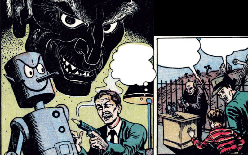 Entre los veinticuatro relatos que esperan en las 184 páginas que conforman el volumen podemos destacar varios relatos como muestra de la potencia terrorífica que había en las páginas de la revista. Sirva, como primera muestra, «El juguete de Satanás»(“Satan´s Plaything”), donde somos testigos de cómo el mal toma la forma de un objeto inofensivo, desencadenando una serie de eventos que desafían toda lógica. Esta historia juega con la idea de que el mal puede acechar en las esquinas más inesperadas de nuestras vidas, llevándonos a un viaje perturbador a medida que los personajes luchan por entender y vencer a este juguete endemoniado. Para ver su repercusión a nivel popular, podemos poner un ejemplo claro de la influencia de este relato, que no es otro que el episodio de la serie de «los Simpsons» que lleva por título “Treehouse of Horror”.