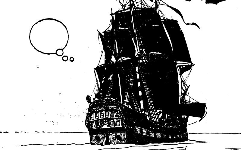 En el siglo XVIII, los viajes en alta mar eran esencialmente peregrinajes, misiones arriesgadas que llevaban a los marinos más allá de las fronteras conocidas hacia la vastedad azul del océano. Los barcos, impulsados por la fuerza del viento y la destreza de sus tripulaciones, se convertían en santuarios flotantes que guiaban a los aventureros a través de mares desconocidos. Estas expediciones tenían objetivos variados, desde el comercio y la expansión de imperios hasta la exploración de nuevas rutas marítimas y territorios. Los marinos, en su afán por descubrir y conquistar, se embarcaban en viajes que a menudo se convertían en odiseas de años, enfrentándose a la incertidumbre y a los peligros del mar abierto. La vida a bordo de un barco del siglo XVIII no era para los débiles de corazón: los tripulantes a menudo vivían en un espacio confinado, donde cada centímetro cuadrado estaba meticulosamente asignado para cumplir con funciones específicas. La intimidad era un lujo inexistente en medio del vasto océano. Las condiciones a bordo eran ásperas y exigentes. Además, existía la constante amenaza de tormentas impredecibles: el riego de naufragar o peligrosos encuentros con corsarios o enemigos de otras naciones. La rutina diaria implicaba trabajo arduo, desde la navegación y la vigilancia hasta la maniobra de velas y la reparación de aparejos. La alimentación también era escasa y monótona, dependiendo en gran medida de las raciones almacenadas a bordo. Las enfermedades, como el escorbuto, causadas por la falta de vitaminas frescas, eran una amenaza constante. En este entorno, la camaradería y la disciplina eran esenciales para mantener la moral y garantizar la supervivencia. Todo eso aparece en el clásico de Carlos Trillo y Enrique Breccia: “El Peregrino de las Estrellas”, un relato para embarcarnos en un océano entrelazado de conceptos marineros e imperecedera alta ficción de gama alta.
