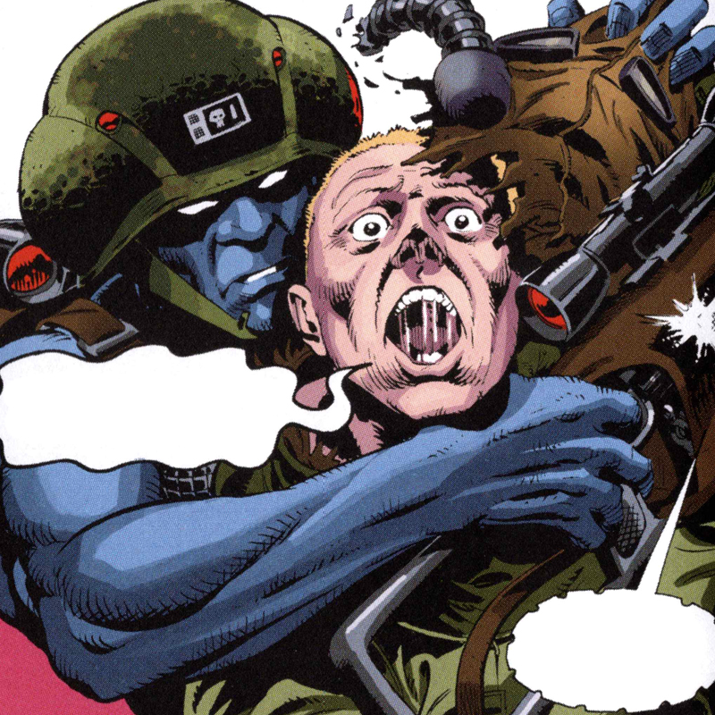 Gibbons dejó huella en el personaje desde un primer momento, pero eso también nos lleva a una advertencia previa: el británico no se quedó mucho tiempo en la serie, apenas cerró el primer arco y dejó algunas pinceladas para el segundo. No obstante, es innegable que su ausencia no afecta al apartado gráfico, pues la serie cubrió la parte gráfica con artistas más que solventes. Eso si: puede haber estilos diferentes, pero en general predomina el estilo característico que trazó en origen Gibbons, donde se fusiona lo militar con la ciencia ficción, destacando la piel azul del protagonista en un universo poblado mayormente por personajes humanos, sin desviarse hacia otros conceptos del género.