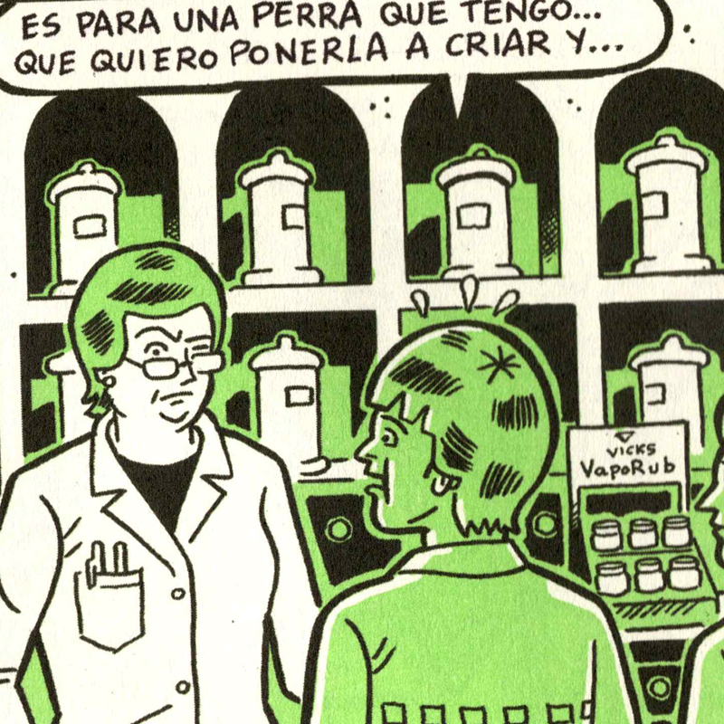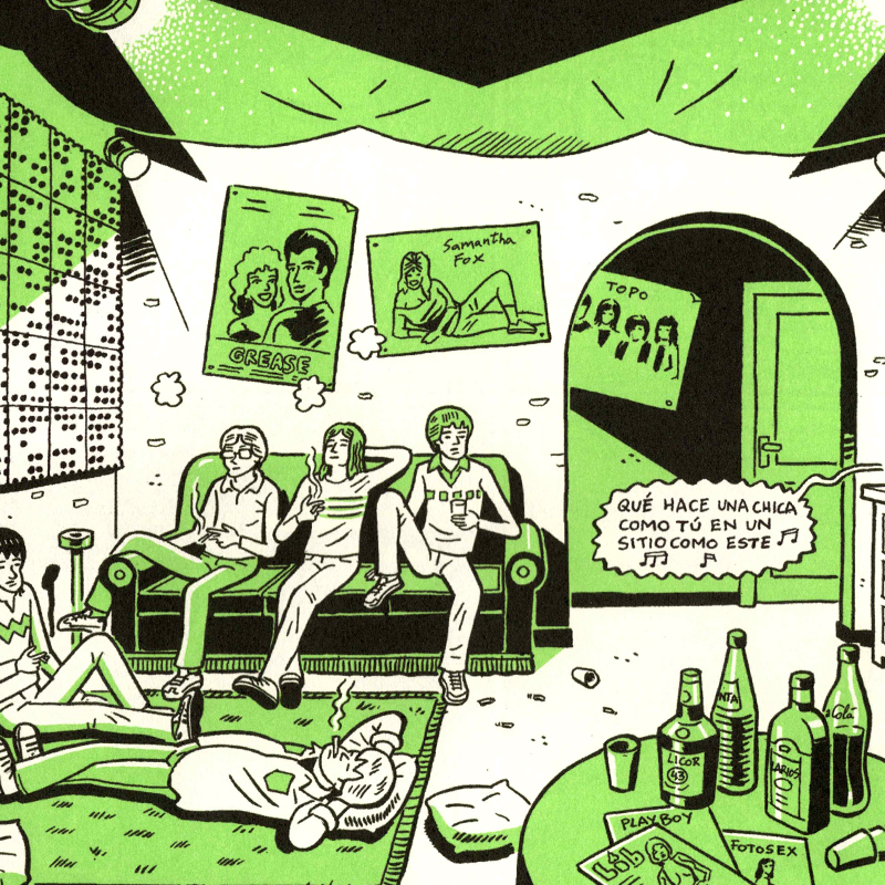 En el aspecto gráfico, el uso del bitono negro y verde en el cómic es una elección artística brillante que evoca la estética de los cómics indie americanos de los 80. Esta paleta limitada no solo crea una atmósfera nostálgica, sino que también enfoca la atención en las emociones y las expresiones de los personajes, subrayando los momentos clave de la historia. Manresa demuestra una habilidad magistral para mezclar la narración principal con pequeñas historias de personajes secundarios, creando una trama rica y dinámica. La fluidez con la que se entrelazan las anécdotas y los episodios más serios mantiene al lector enganchado y hace que cada página sea una experiencia vivida sobre todo para un lector que vivió en esa época.