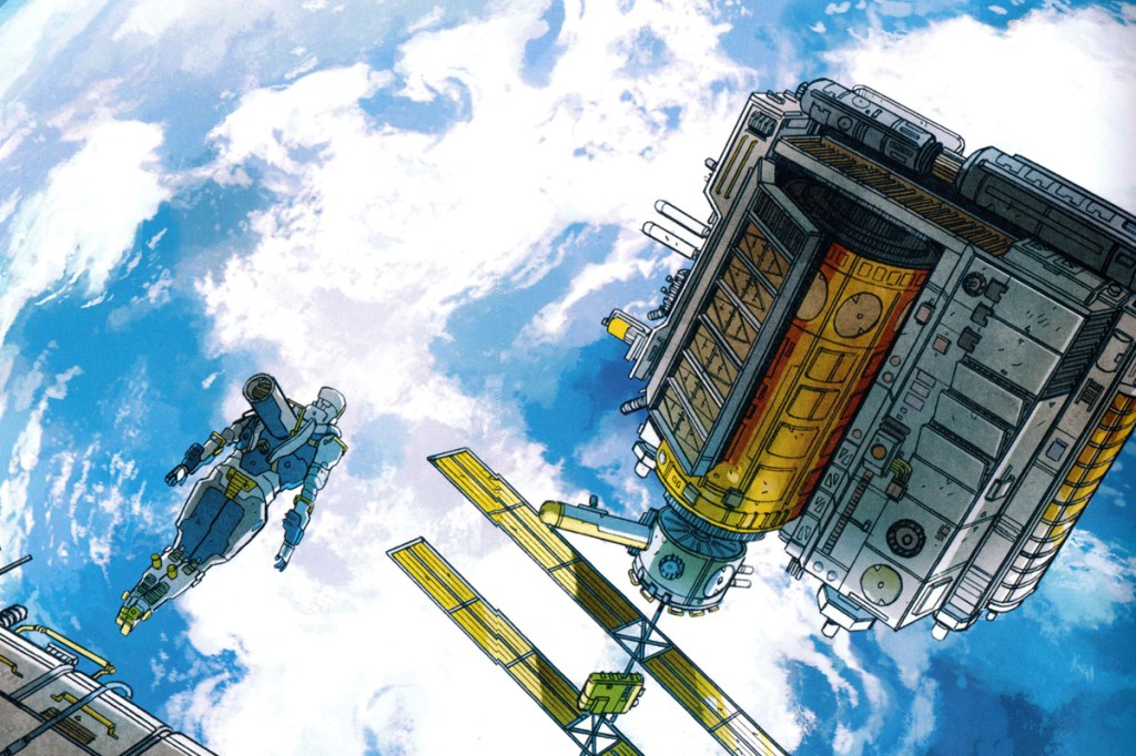 Bablet no solo es un narrador hábil, sino también un artista excepcional cuya visión estética es fundamental para el impacto de la historia. El estilo de dibujo combina una atención meticulosa al detalle con un sentido de tintes épicos, creando un mundo que es tan inmenso como claustrofóbico. Aquí se refleja la arquitectura no solo como un fondo estático, sino como un elemento narrativo que refleja el estado psicológico de los personajes y la naturaleza de la sociedad en la que viven. Las líneas rectas y las estructuras imponentes de la estación espacial sugieren un mundo donde la tecnología y la eficiencia han desplazado a la humanidad y la libertad individual. Esto está a menudo representado en planos generales que muestran a los personajes como pequeñas figuras en un vasto entorno, subrayando la insignificancia del individuo frente al sistema. Además, el efecto de la arquitectura en el trabajo de este historietista se puede ver en cómo estructura sus páginas: utilizando perspectivas forzadas y ángulos inusuales para crear un sentido de profundidad y volumen que amplifica la dimensión de lo contado.