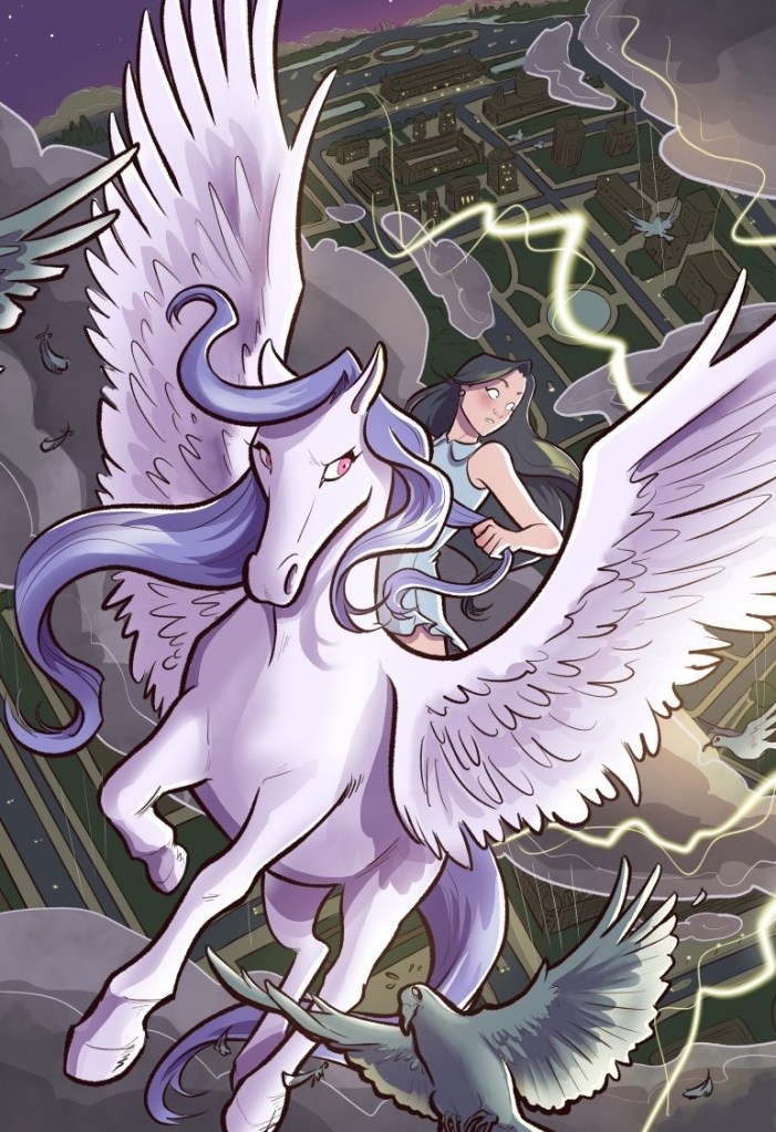 Por eso, visualmente, Celestial es una maravilla. El contraste entre el Cielo y el Averno está representado de manera espectacular: los tonos cálidos y oscuros del inframundo frente a los colores suaves y luminosos del paraíso. Cada página está repleta de detalles, desde las expresiones faciales exageradas que capturan a la perfección las emociones de los personajes, hasta los fondos llenos de pequeñas referencias y guiños que los lectores más atentos disfrutarán. El diseño de personajes también merece un aplauso. Satanna, con su gris plateado intenso y su actitud descarada, es un espectáculo en sí misma. Pero los ángeles y demás habitantes del Cielo no se quedan atrás: sus diseños combinan elementos clásicos con toques modernos que los hacen únicos.