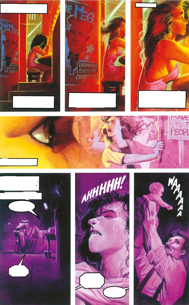 Para destacar en el apartado gráfico tenemos a Colin MacNeil, cuya contribución es fundamental para capturar la atmósfera de la historia. MacNeil adopta un estilo realista que aporta un peso emocional tangible. Sus viñetas están cargadas de melancolía, con una paleta de colores sombríos que intensifican la sensación de desesperanza. Cada trazo refleja las emociones de los personajes: la determinación de América, la resignación de Beeny y la implacabilidad de los jueces. Las palabras de Wagner, Ennis y Grant encuentran su eco perfecto en las ilustraciones de MacNeil, John Higgins con Sally Jane Hurst, John M. Burns y Jeff Anderson, logrando un conjunto que amplifica la potencia de los temas centrales de la obra: la justicia, la resistencia y la libertad.