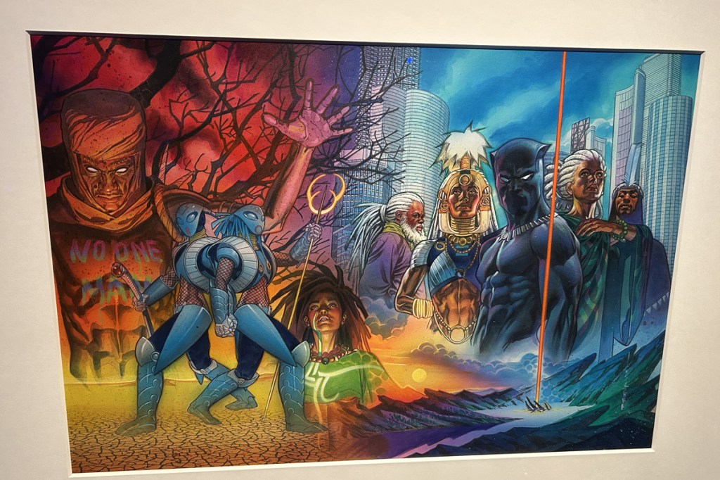 Lo que realmente me sorprendió fue la diversidad de estilos y enfoques artísticos que se pueden encontrar en esta exposición. Desde el trazo limpio y preciso de Neal Adams, hasta las composiciones surrealistas de Jean Giraud (Moebius), la muestra es un reflejo de cómo el arte de los cómics ha evolucionado para abarcar una riqueza visual impresionante. Jim Steranko, por ejemplo, es uno de esos artistas cuyo trabajo desafió todas las normas. Sus páginas de Nick Furia: Agente de S.H.I.E.L.D. son una explosión de creatividad, llenas de psicodelia y diseño experimental que parece adelantado a su tiempo incluso hoy. Además, me encantó ver cómo artistas contemporáneos como Sara Pichelli han dejado su huella en personajes modernos como Miles Morales. Sus páginas originales de Ultimate Comics: Spider-Man están cargadas de energía juvenil y emoción, algo que me recordó cómo los cómics siguen evolucionando para reflejar las experiencias de nuevas generaciones. También destacan los originales de Todd McFarlane, cuyo Spider-Man de los años 90 redefinió la forma en que veía al trepamuros cuando era pequeño. Sus poses exageradas, las redes detalladas y ese dinamismo casi teatral en sus páginas siguen siendo tan emocionantes como la primera vez que las vi.