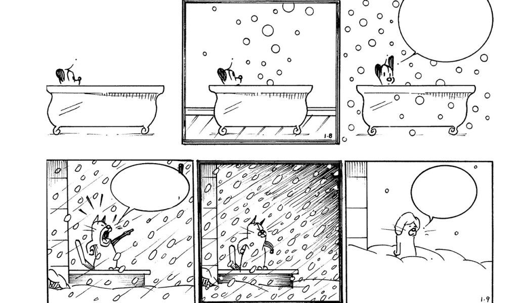 Visualmente, MUTTS es un regalo para los ojos. McDonnell tiene un estilo limpio y elegante que parece sencillo, pero que transmite una profundidad impresionante. Un par de líneas bien colocadas pueden capturar la alegría de un perro corriendo tras una pelota o la altiva indiferencia de un gato mirando una mosca (y decidiendo que no vale la pena el esfuerzo). Las tiras de este volumen tienen una frescura que sigue sorprendiendo, incluso después de décadas. McDonnell sabe jugar con el espacio, el silencio y los detalles mínimos para crear viñetas que hablan directamente al corazón.