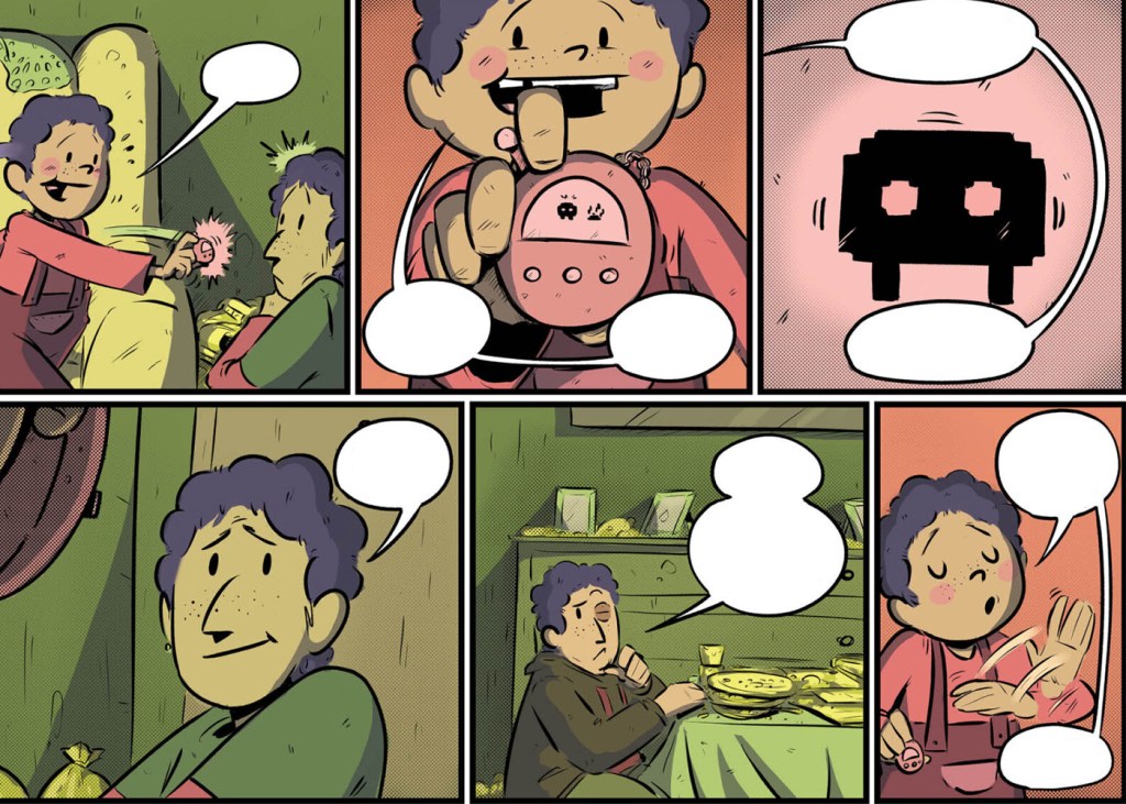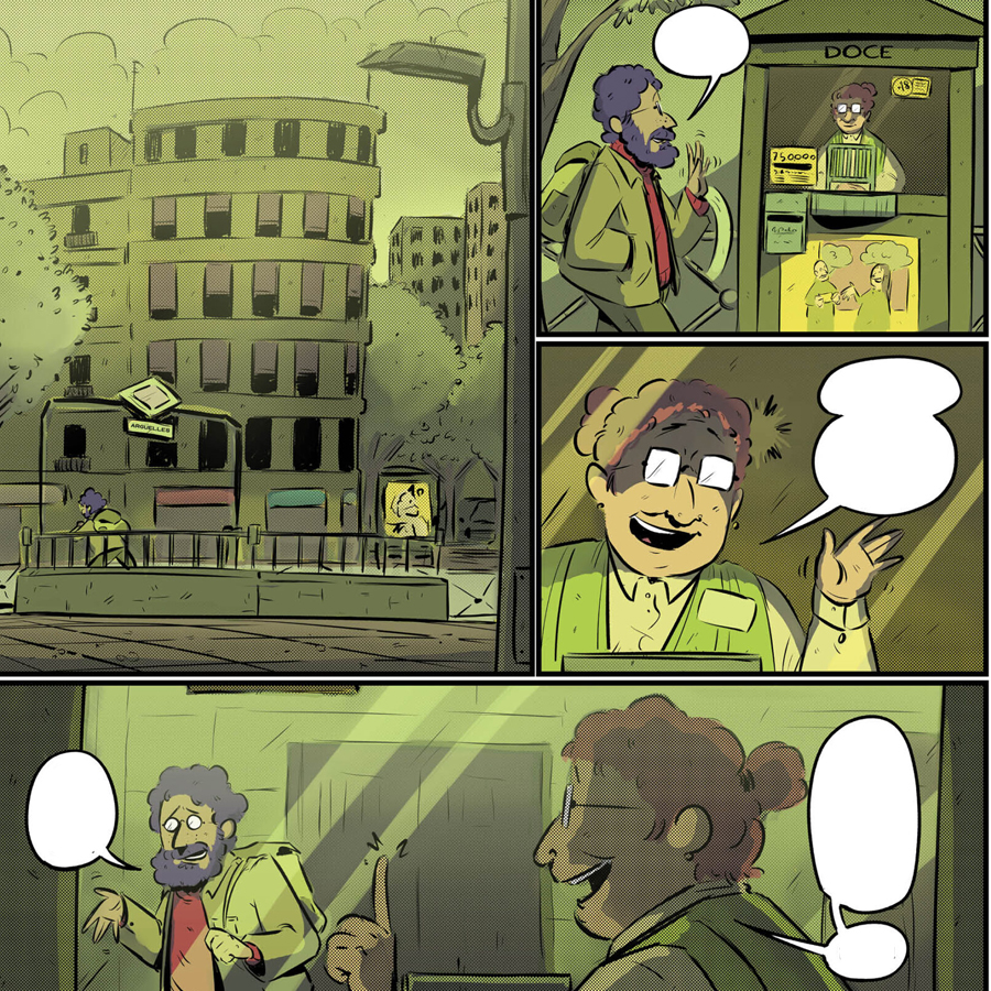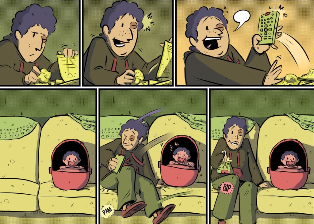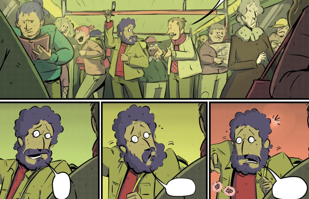 La estructura del tebeo recuerda en algunas ocasiones al clásico «Cuento de Navidad» («A Christmas Carol«) de Charles Dickens, donde el protagonista se enfrenta y vive con diferentes versiones del tiempo (pasado, presente y futuro) para reexaminar su vida. Sin embargo, Palomeque lleva esta fórmula más allá, al entrelazar las múltiples temporalidades en una única identidad, creando un viaje introspectivo que va más allá de la simple redención. Nos ofrece preguntas con un pequeño misterio que según avanzas en las páginas se van descubriendo y a la vez plantea preguntas universales: ¿Qué cambiaríamos de nuestro pasado si tuviéramos la oportunidad? ¿Cómo podemos reconciliarnos con los errores que nos atormentan? ¿La vida es tan mala como muchas veces creemos que es? A través de estas interrogantes, este autor invita al lector a reflexionar sobre las prioridades que realmente importan: la salud mental, las conexiones humanas y realmente intentar hacer aquello que nos haga felices.