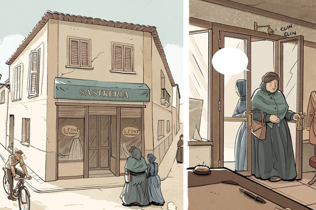 Si el guion de Pujadas es el corazón de la obra, el dibujo de Tomeu Riera es su alma. Con un estilo aparentemente sencillo, el artista mallorquín logra mostrar la atmósfera opresiva de la época con un nivel de detalle asombroso. Las calles polvorientas, los rostros marcados por el hambre y la desesperación, los interiores austeros… Todo en el dibujo de Riera contribuye a introducirnos en este universo de sombras y contradicciones. Uno de los aspectos más destacados del dibujo es cómo representa las emociones de los personajes. Con una economía de trazos, Riera transmite el dolor, la resignación y la rabia contenida de unas mujeres que, pese a todo, encuentran en su forma de ser un atisbo de esperanza.