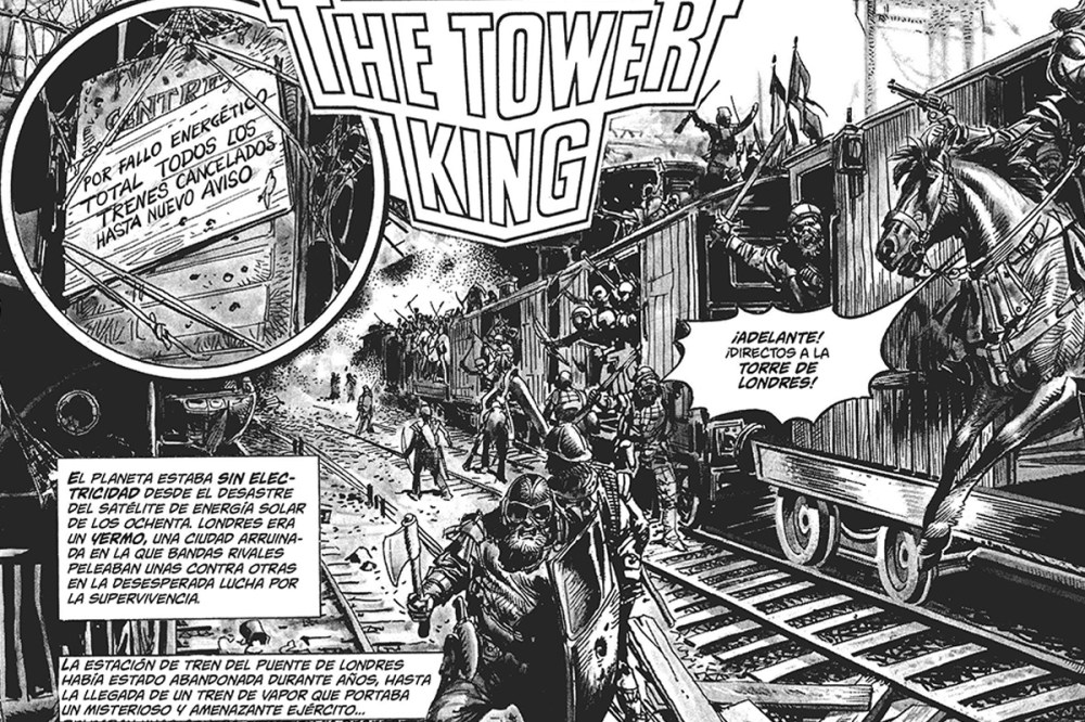Cuando la civilización moderna se apague de un plumazo, el resultado será el caos, desesperación y un vacío de poder que nadie sabe cómo llenar. Esta es la premisa de El Rey de la Torre («The Tower King«), una obra que, a simple vista, podría parecer otra historia postapocalíptica más, pero que se eleva como un clásico atemporal del cómic gracias al interesante guion de Alan Hebden y al arte inolvidable de José Ortiz. A través de 92 páginas que rezuman tensión, acción y espectáculo puro, esta historia no solo nos muestra un Londres destruido, sino también la lucha desesperada de sus habitantes por reconstruir algo, cualquier cosa, que se parezca al orden. El tebeo, originalmente publicado en 1982 en la revista británica Eagle, encuentra en su reciente reedición editada por Isla de Nabumbu una segunda vida, presentando en toda su gloria un relato que combina lo mejor de la ciencia ficción, el thriller de supervivencia y la reflexión social.