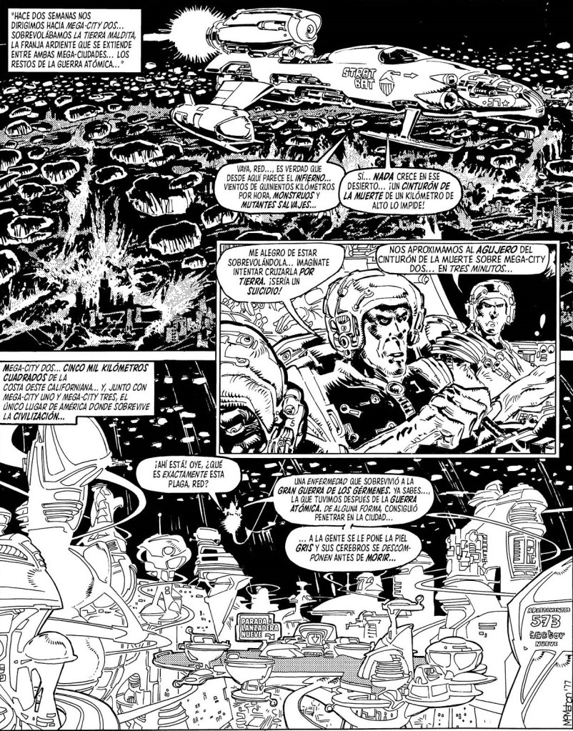 Prepárate para un viaje sin frenos a través del infierno radiactivo que es «La Tierra Maldita«(The Cursed Earth), esa saga maldita y sin pelos en la lengua que, Pat Mills, John Wagner, Chris Lowder, Mike McMahon y Brian Bolland nos ofrecieron en su máximo esplendor. Con una dosis extra de locura que ni los dioses de la burocracia se atrevieron a soñar. Aquí, en pleno año 2100, Mega-City Dos se ha convertido en un puto caos: un virus asesino ha transformado a la gente en auténticos zombis furiosos, dispuestos a morder, destrozar y, claro, acabar con sus propias vidas. Y para rematar el desastre, Juez Dredd, el intransigente paladín de la ley, tiene la misión imposible de llevar la vacuna de costa a costa a través de la baldía de Medio América, conocida vulgarmente como «La Tierra Maldita».
