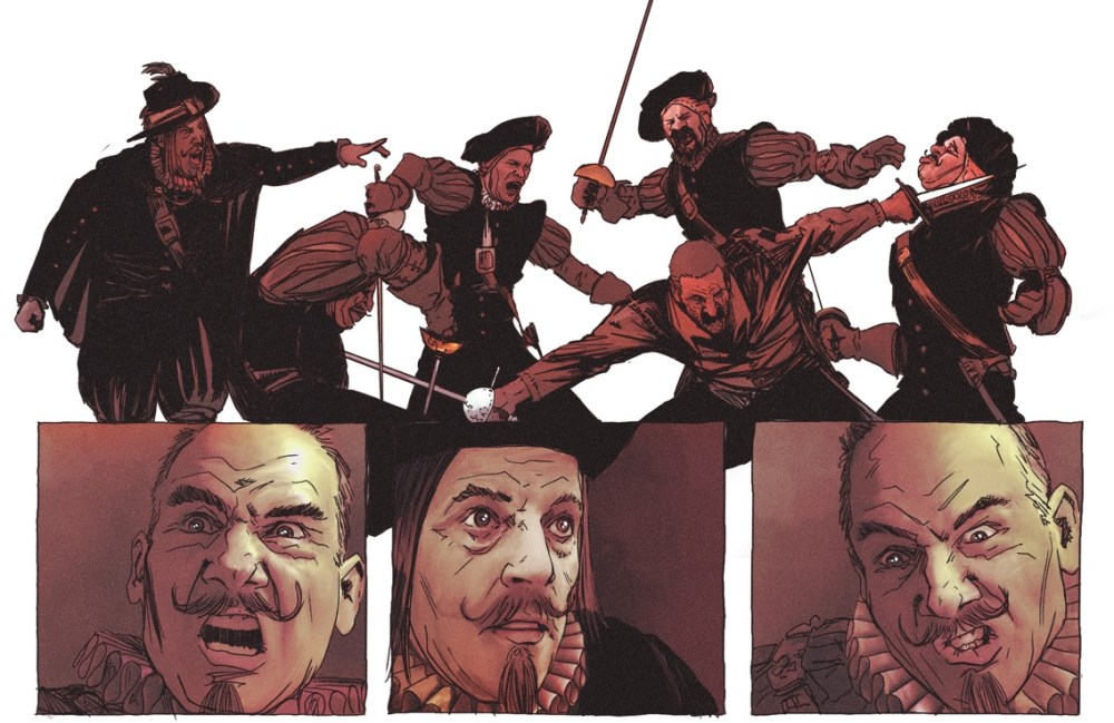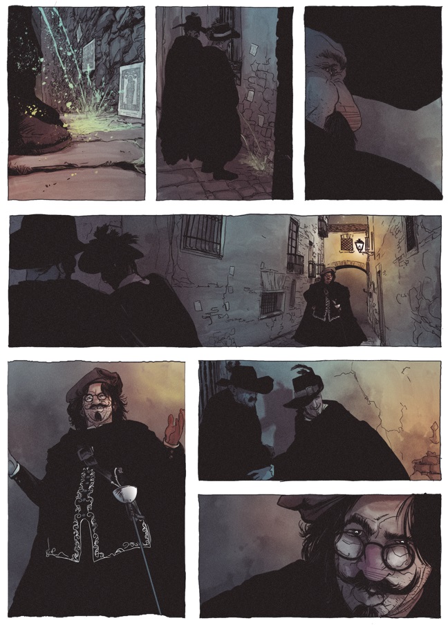 Eso está en este encuentro entre Lope y Contreras, perfectamente disfrutable por cualquiera que se acerque a él. Ante todo, este es un tebeo que es sólido por si mismo, sin necesidad de tener un bagaje previos, literario o histórico, de lo que aquí aparece. Y así ha de ser. Obviamente, quien posea conocimientos históricos o de literatura de la época advertirá detalles que enriquecerán su lectura. Pero la esencia del tebeo está ahí ser disfrutar por todos. Esa es la brillantez de “Espada y Pluma”: que fusiona entretenimiento, Literatura e Historia en una ficción donde alta y baja cultura se encuentran y se dan la mano, consiguiendo el más elevado objetivo de quien cuenta un relato: narrar con talento e ingenio.