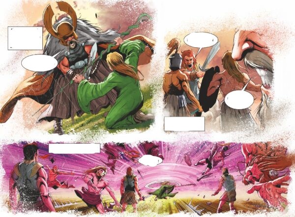 A nivel narrativo, Manuel Veiga demuestra su habilidad para construir un mundo rico en detalles, aunque en esta entrega la historia se parece más un interludio que un episodio con identidad propia. Si bien la acción y el peligro están presentes en cada página, la profundidad de los personajes secundarios queda en un segundo plano, lo que resta algo de interés en ciertos momentos clave. También aparecen aquí paralelismos con clásicos de la Espada y Brujería: la exploración del villano en esta entrega recuerda en algunos momentos a las historias clásicas de Conan el Bárbaro.