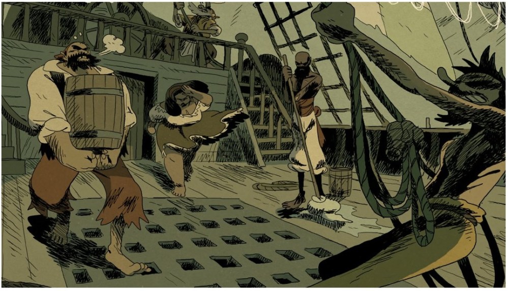 Es el lema de los tripulantes del “Carcoma”. Un barco pirata que subsiste allende los mares, con una promesa firme de no volver a tierra firme. Esa tierra que alberga pasados no confesables, por dolorosos. Es el océano pues el refugio de esas vidas desdichadas que pueblan el barco, las de la tripulación que navegará entre aguas y mitos en el nuevo cómic de Andrés Garrido, editado en castellano por Nuevo Nueve.