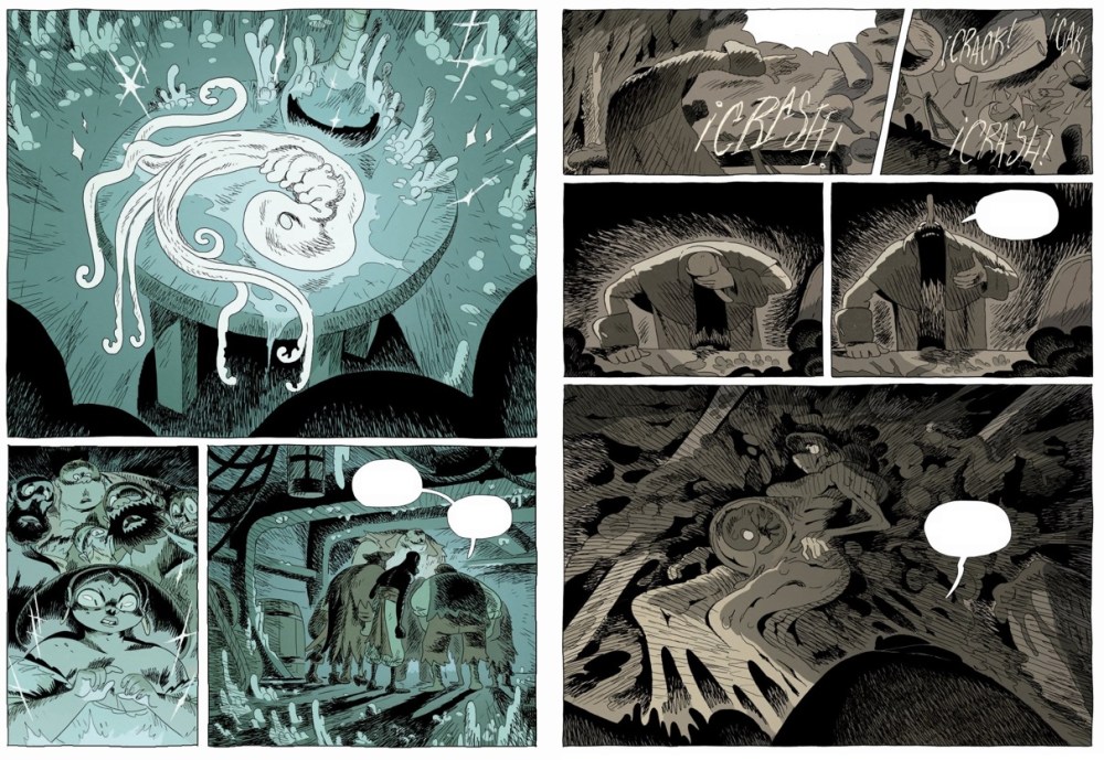 Así los mitos asociados al mar se entroncan con elementos propios del terror lovecraftiano en el personal trazo de Garrido. Fluyendo con una solidez de una pieza. Con un rumbo firme, el de hacer crecer el relato. Plasmando un guion que a priori puede parecer complejo, pero que se muestra con una efectiva y natural agilidad, fluyendo en el estilo y trazo de Garrido. Ese que parece habitar en un terreno híbrido entre lo manga y lo europeo. El lugar donde el madrileño dota de vida a sus creaciones. Con decisiones narrativas notables, que maximizan tanto el tono como el ritmo de la obra. Esos son los trucos que hacen que de no se pueda acabar la lectura de este tebeo hasta llegar al final.