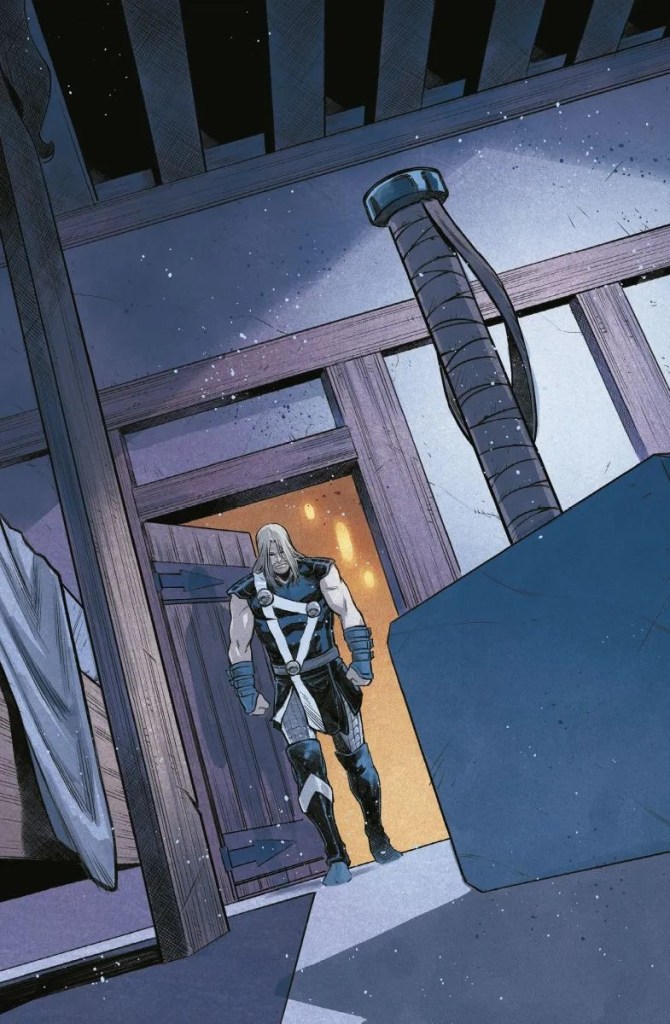 Thor nunca ha sido solo un héroe. Es un rey, un hijo, un guerrero y, sobre todo, un ser atrapado entre su propia identidad y el destino que los dioses parecen haberle trazado. La relación con Mjölnir siempre ha sido simbólica: no solo es su arma más poderosa, sino también el reflejo de su valía. En esta historia, Donny Cates junto con Michele Bandini pone en el centro de la historia la naturaleza de esta conexión y la eleva a niveles cósmicos e inesperados. Cuando Thor decide dejar su martillo, lo hace con la intención de ser un mejor líder, sin imaginar que Mjolnir podría tener voluntad propia. Por otro lado, la desaparición del martillo se convierte en un misterio que ni siquiera la todopoderosa Lady Sif puede resolver. Esto no es una simple perdida; es el inicio de una pesadilla. El martillo no está simplemente perdido: está en un estado de furia incontrolable, desatando caos y destrucción en los Diez Reinos. En la mitología de Asgard se hablaba sobre esta posibilidad con la profecía del «Dios de los Martillos«, pero nadie tomó en serio su significado hasta ahora.