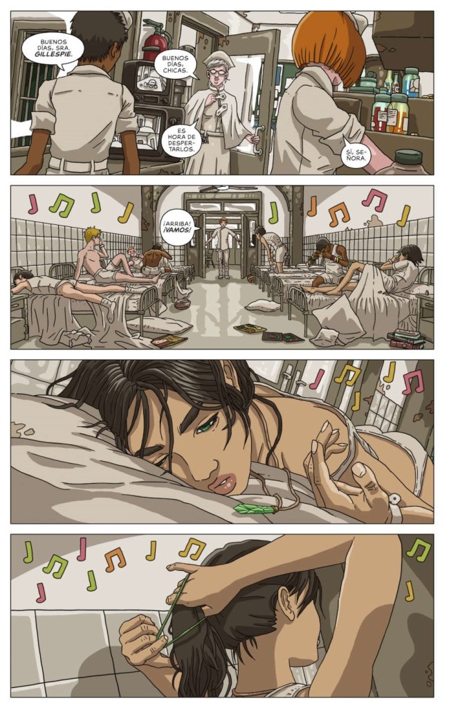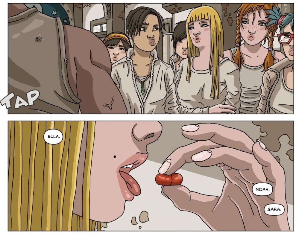 En “Juvenile” nos vamos a encontrar un futuro en el que, aparentemente, los adolescentes enferman conforme crecen. La causa aparente es un virus. Para poder curarlos, los adultos los recluyen en centros con normas más propias de prisiones, con férreos controles. Medicados y vigilados al extremo, conviven con la esperanza de una cura y el temor a la muerte. Sin embargo, algo va a ocurrir que hará caer el telón del engaño: no existe tal enfermedad, sino la posibilidad de evolución, de desarrollar un potencial, que los adultos quieren mitigar con pastillas y, llegado el caso, extirpar con intervenciones quirúrgicas.