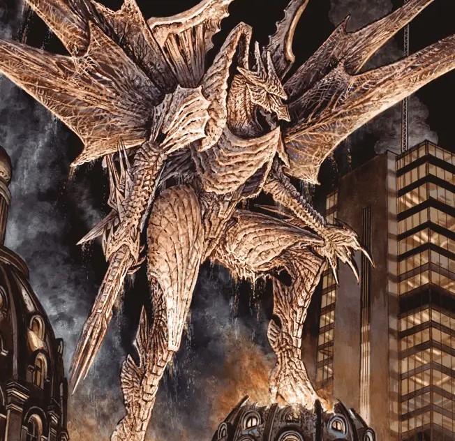 Si el primer tomo sienta las bases y nos presenta a los personajes, «El Despertar del Cisne Negro» amplía el mundo, sube la apuesta y empieza a explicar qué demonios está pasando. Y lo hace sin perder ese aire de misterio que lo vuelve adictivo. Descubrimos que los monstruos, lejos de ser simples fuerzas de la naturaleza, tienen una historia, una razón de ser. Sanz introduce un concepto fascinante: la Tierra como prisión cósmica. Según esta mitología, nuestro planeta fue creado como una celda para encerrar a entidades conocidas como los Chacales, responsables del Big Bang. ¿Quién los encerró? Una raza aún más antigua y poderosa: los Longevos. Y, por supuesto, algo (o alguien) los ha comenzado a despertar. La niña Tina se convierte en una figura clave. Posee un cuerno que sirve para invocar a uno de los titanes. Pero el uso de este artefacto no es casual: su conexión con las criaturas sugiere un legado, una herencia que va más allá de lo genético. Cuando su padre intenta usar el cuerno, el resultado es muy distinto. Hay algo en Tina que la vincula profundamente a estos seres. Y aunque todavía no lo entendemos del todo, esa ambigüedad es lo que mantiene la tensión. Mientras tanto, nuevos monstruos hacen su aparición. Uno de ellos es el Fénix, que surge de las cenizas de Montevideo para desplazarse a las Cataratas de Iguazú. El otro, el Cisne Negro, se presenta como el antagonista central de este segundo tomo. Cada criatura tiene un diseño único, que escapa del estilo de reptil clásico del género kaiju acercándose más a un monstruo creado por Lovecraft.