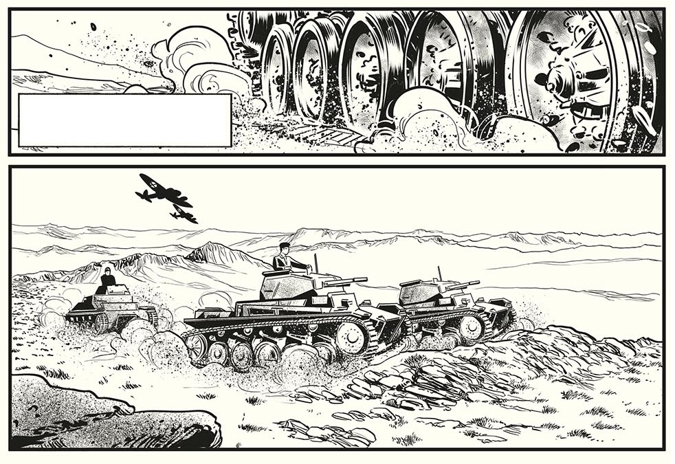 La coyuntura de la efeméride se antoja ideal para la edición en castellano de esta obra, que fue publicada en francés el año pasado por Le Lombard. Suele ser una costumbre muy humana que las efemérides despierten la curiosidad y este tebeo la sacia con eficacia. Arnaud de la Croix (“La verdadera historia de la Edad Media”) ha diseñado un guion tan didáctico como interesante, huyendo en todo momento de sesgos y centrando el foco en los hechos. En sus páginas, más que argumentar, expone y documenta los años difíciles de la primera mitad del Siglo XX europeo y mundial, desde el Tratado de Versalles que puso fin a la Primera Guerra Mundial (que fue la semilla de la segunda) hasta la rendición de Japón el 2 de septiembre de 1945.
