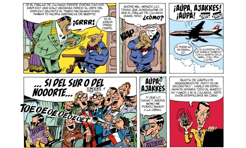Pero el cómic no se detiene ahí. Tras esta historia larga y sabrosa, llegan las pequeñas joyas que Lodewijk escribió en paralelo a eventos deportivos. Y aquí es donde el genio del autor brilla de verdad: ¿quién necesita Juegos Olímpicos cuando puedes ver a 327 impedir que un atleta encienda la llama olímpica? Estas historias breves, pensadas como gags comprimidos, son pura dinamita humorística. Tienen la velocidad de un sketch de televisión, la gracia de un dibujo animado y la precisión de un reloj atómico. Y todas, absolutamente todas, funcionan. Lo interesante es que, incluso en estas brevedades, Lodewijk se permite jugar con los códigos del género. No es solo que parodie a los espías: también ridiculiza a los entrenadores, a los vuelos en avión, a los periodistas deportivos y hasta al mismo lector. Aquí nadie se salva. Pero todo se hace con una sonrisa. Este no es un cómic que destruya: es uno que desmonta, que analiza y reconfigura el género de espías como si fuera un Lego mal ensamblado.