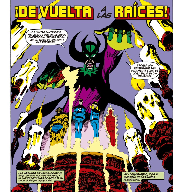 Desde la primera página, John Byrne deja claro que tiene una misión: recuperar la esencia del grupo y volver a hacerlos relevantes. No quiere reinventarlos, sino recordarle al lector por qué los amaba. Y lo logra. ¿Cómo? Simplificando, pero sin empobrecer. Potenciando, pero sin exagerar. Y, sobre todo, entendiendo algo que alguno había olvidado: los 4 Fantásticos no son simplemente una “familia de superhéroes”, sino una familia que resulta tener superpoderes. Su drama no es la lucha contra el mal, sino contra el día a día. Contra el matrimonio, la paternidad, el trabajo, la fama, el cansancio, los remordimientos. El elemento humano es clave, y Byrne lo recupera con fuerza. Se inicia con la presentación de Diablo, el villano alquimista, en una historia que permite a Byrne demostrar su habilidad para narrar con claridad y ritmo. No es la amenaza más temible, pero el tebeo es tan compacto y visualmente atractivo que funciona como carta de presentación perfecta. Cada historia está planificada como un episodio de lujo: empieza con un misterio sobrenatural, se enreda con una tensión íntima entre personajes y culmina con una resolución espectacular que te deja con ganas de más. Pero lo que eleva el conjunto no es solo la estructura, sino el tono: Byrne escribe con la seriedad de un físico teórico que sabe que la vida no tiene sentido sin afecto, y dibuja con la soltura de un director de orquesta que también hace malabares. Los cuerpos se mueven con peso, las explosiones tienen lógica visual, los diálogos fluyen como una buena serie de televisión, y cada página rezuma ese sabor de los tebeos buenos.