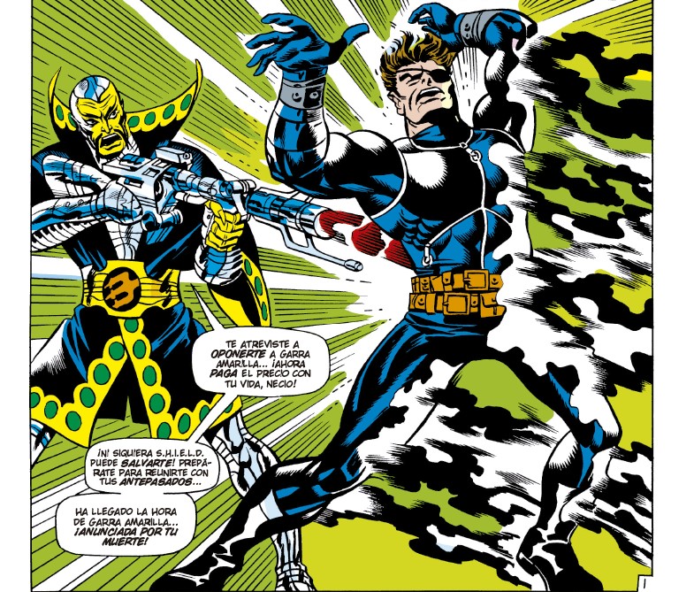 Este cuarto volumen recopila el final de la etapa de Strange Tales (números 164 al 168), el intermedio que cierra la saga de Garra Amarilla y da paso a la explosión total de creatividad que fueron los tres primeros números de Nick Fury, Agent of S.H.I.E.L.D. publicados en 1968. En tan solo esas siete entregas, Steranko lo da absolutamente todo. No es que lo intente. Es que se vacía por completo. Como si supiera que solo tendría esa oportunidad, que no podría jugar a largo plazo. Cada página está pensada como si fuera la última. Cada viñeta, cada color, cada pose y cada ángulo está diseñado no para contar la historia de un espía al servicio de la paz mundial, sino para redefinir lo que era un cómic Marvel.