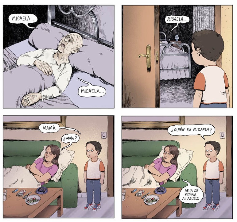 Probablemente la mayoría de seres humanos están acostumbrado a mirar para el otro lado, creyendo que será eterno, aun sabiendo la evidencia física imponderable. Por eso, un tebeo como el que acaba de hacer Irene Márquez («Esto no está bien») nos parece, además de corrosivo, valiente y audaz. Irene no solo aborda el tema en estas páginas, sino que mira a los ojos de la muerte con rabia y mucha mala uva, destilando un ácido humor negro. De los que mete el dedo en la llaga. Llegando a incomodar en ocasiones, siempre tocando hueso. Sin anestesia.