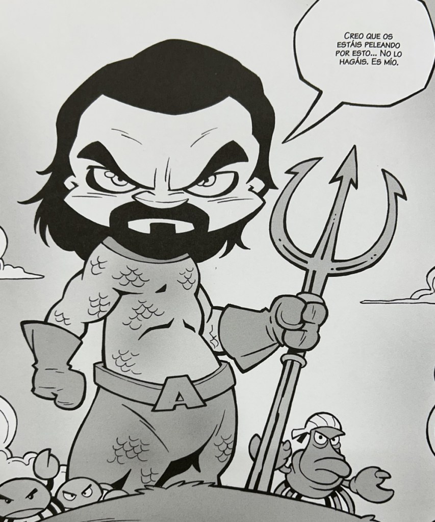 Este integral es un festín de referencias, un bufé libre de homenajes, parodias y amor por los cómics y el cine más dispares. Aquí hay chistes que harían llorar de alegría a Jack Kirby y cameos que harían a Tarantino romper la cuarta pared con una reverencia. Cabezones del Caribe no es solo una parodia de las cinco películas piratas más mainstream de los últimos tiempos: es un chiringuito humorístico donde Vegas sirve mojitos con ron de los Goonies, hielo de Batman y con la compañía de Aquaman (el de Jason Momoa) De repente, un abordaje pirata se convierte en una pelea entre la marina Real Británica y Luffy de One Piece, y tú, como lector, no puedes hacer otra cosa que rendirte y seguir leyendo con la risa desencajada.