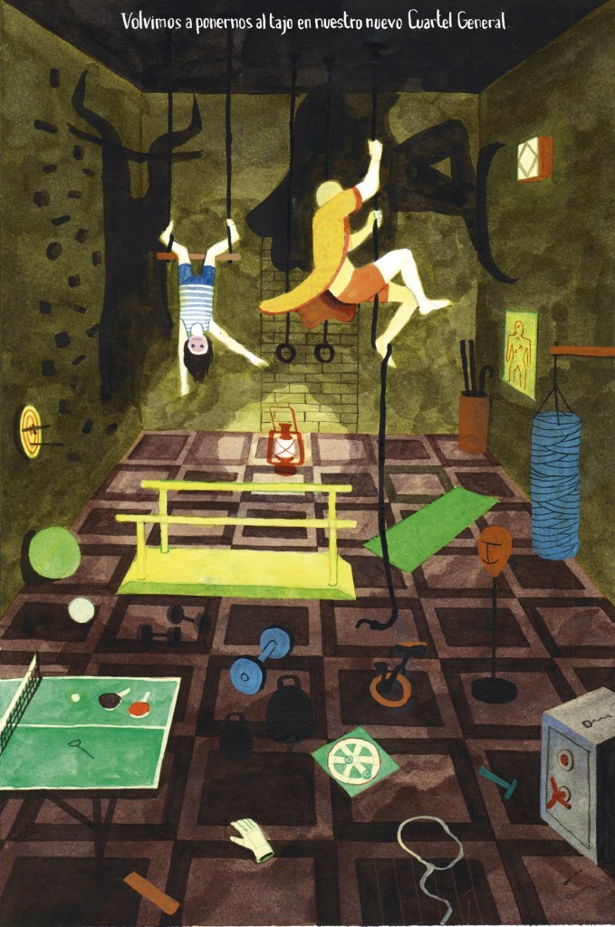 La historia se articula en torno a Arthur, un niño que, como tantos protagonistas de cuentos crueles, tiene más preguntas que respuestas. Su madre ha muerto, su padre se ha encerrado en su propio mundo, y el resultado es un vínculo deformado, una relación de poder y dependencia donde el afecto se enmascara de preparación militar. Evens narra este viaje de manera oblicua, haciéndonos habitar la percepción de Arthur sin que jamás se nos dé la seguridad de que lo que vemos es real. ¿Estamos ante una infancia marcada por el trauma o ante una ficción total, tejida desde la imaginación de un niño que ha sido instruido para desconfiar de todo? Esa ambigüedad es uno de los motores más potentes del libro, y uno de sus logros más duraderos. Cada escena puede leerse en múltiples niveles: como literalidad, como metáfora o como fantasía febril.