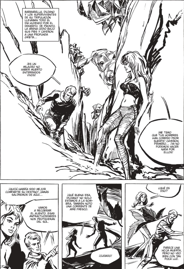 Esta nueva edición de Dolmen en 2025, con traducción de Lorenzo Díaz, no es solo un rescate: es un acto de justicia histórica. Por fin, más de seis décadas después de su aparición en Francia, Barbarella llega a España en una edición en rústica con portada nueva y un arsenal de extras que contextualizan la obra y su relevancia. Los textos adicionales escritos por Ángel de la Calle, Jesús Palacios y Javier Rodríguez, las ilustraciones y los materiales originales permiten al lector entender por qué esta obra es un hito en la historia del cómic europeo y universal. Es cierto que los bitonos originales se han perdido, pero el blanco y negro de Forest sigue conservando toda su energía y encanto.