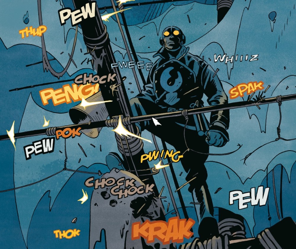 Junto a Arcudi y Mignola, una alineación notable de artistas ponen a disposición su arte para que “sintamos la pinza” de forma efectiva. Destaca, por méritos propios, Tonci Zonjic. El serbio es el encargado de ilustrar los dos relatos con más peso del volumen: “Los monstruos de metal del centro de la ciudad” (“Metal Monsters of Midtown”) y “El fantasma del pirata” (“The Pirate’s Ghost”), demostrando nuevamente que no hay nadie mejor para dibujar el clima y ambiente que rodea esa Nueva York de los años treinta donde Bogavante protagoniza sus aventuras.