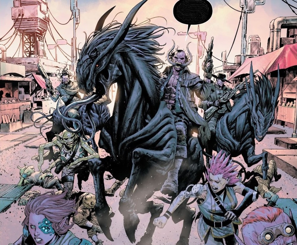 El gran logro de Aniquilación 2099 es que cada capítulo, aunque breve, se siente como una puerta a un rincón inexplorado del futuro Marvel. El tono cambia sin romper la coherencia: pasamos del western sucio al horror cósmico, de la mitología estelar al thriller infernal. Todo envuelto en esa estética 2099 que combina decadencia tecnológica y exotismo cultural. Orlando sabe dosificar la información: te da lo justo para entender, pero deja huecos para que quieras volver. Para que busques conexiones con otras series como Spider-Man 2099 o incluso con los cómics originales de los años 90.