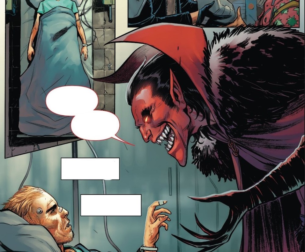 «Nova 2099» abre el camino. Olvida al héroe reluciente de las estrellas: aquí tenemos a un forajido cósmico, un pistolero solitario vagando por planetas polvorientos que parecen sacados del Lejano Oeste. Si el Lejano Oeste estuviera plagado de simbiontes adoradores del “Maestro del Vacío”. Su historia, narrada con la intensidad de un duelo al sol en el espacio profundo, esconde un secreto que, cuando estalla, reconfigura todo lo que creías saber sobre él. Después llega «Starlord 2099» con un enfrentamiento a Quasar, la Estrella Viviente, en una guerra que es tanto física como simbólica. Posteriormente pasamos al Hulk Rojo que salta por el hiperespacio como un titán que atraviesa ventanas entre realidades, enfrentándose a Terrax, el Cazador de Planetas, en una batalla que parece arrancar trozos del universo. Seguimos con Estela Plateada con un toque infernal. Jonah Marlo acepta un pacto con Mephisto para prolongar su vida… a cambio de su alma. Así, se convierte en el cobrador de almas del diablo en la vasta galaxia. Pero las cadenas del infierno pesan más que cualquier cometa, y la rebelión es inevitable. La historia, a pesar de ser breve, deja un poso de tragedia y rabia que pide a gritos una serie propia. Y entonces, como una sombra que cubre todas las estrellas, irrumpe Drácula. Este no es un cameo ni un capricho: es la encarnación del horror gótico en clave de ciencia ficción. Donde se ve una de las secuencias más inquietantes que ha dado el Marvel futurista: un ataúd negro con crucifijo de neón flotando en el espacio, rescatado por una tripulación de carroñeros que comete el peor error posible… abrirlo.