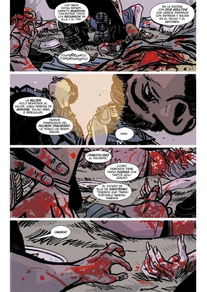 Uno de los grandes atractivos del tomo es el aspecto gráfico. Jesús Saiz se encarga del presente. Batallas frenéticas, paisajes oscuros, ninjas cayendo como moscas, todo con un estilo hiperrealista y potente. Su trazo dota al personaje de una presencia imponente. Casi sobrehumana, perfecta para el rol que ahora ocupa. Por otro lado, Paul Azaceta ilustra los flashbacks, con un estilo más clásico, cercano a lo humano. Ese contraste es intencional. Mientras Saiz retrata al “rey de los asesinos”, Azaceta nos recuerda al niño y al hombre roto que lo precedieron. El problema, claro, es que el salto estilístico puede resultar demasiado brusco y romper la fluidez de la lectura. Pero si se acepta como parte de la propuesta, funciona como metáfora visual de la dualidad de Castle.