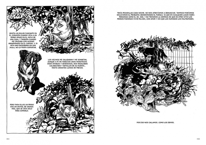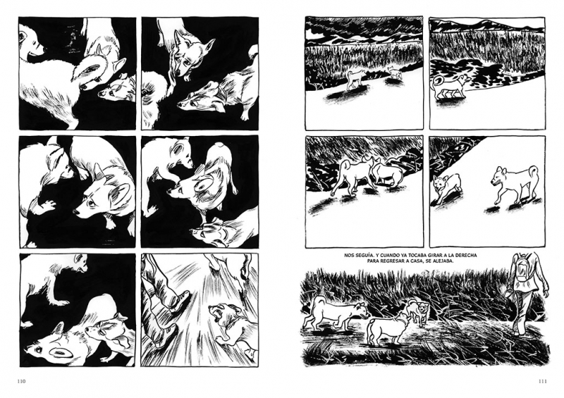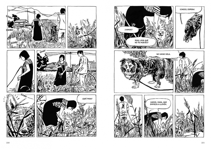 Mientras tanto, diferentes perros pasaran por estas páginas. Unos llegaran para quedarse, siendo nuevos miembros de la familia. Otros tendrán una presencia más pasajera, fruto de ese entorno en el que viven y condiciona sus caninas vidas. En el centro, la voz de la autora, testigo de los vínculos que está desarrollando con sus mascotas y de la suerte (no tan buena) que corren muchos perros sin hogar. En esa amalgama de sentimientos reside la fuerza de este tebeo. Una fuerza que Keum Suk Gendry-Kim ha sabido domar en estas páginas, edificando una propuesta tan consistente en fondo como (aparentemente) delicada en formas.